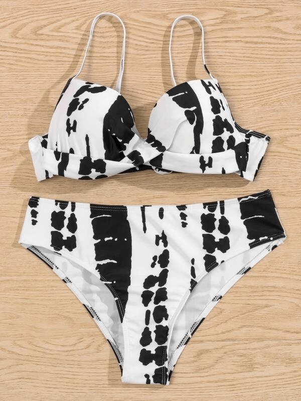 The spaghetti strap removable padded top matches the high waist bottom to make 2 piece swimming suit.