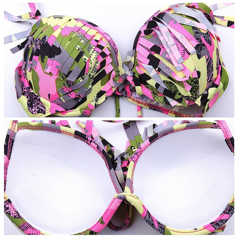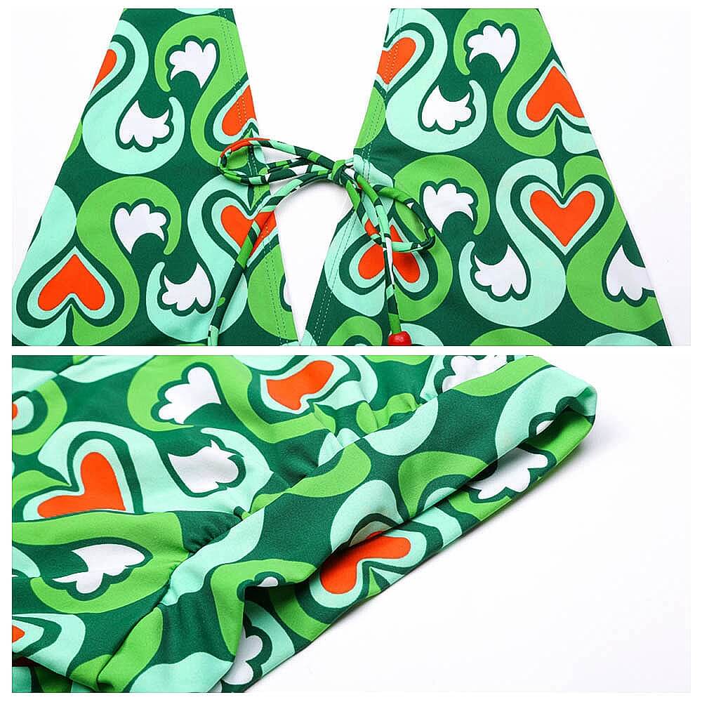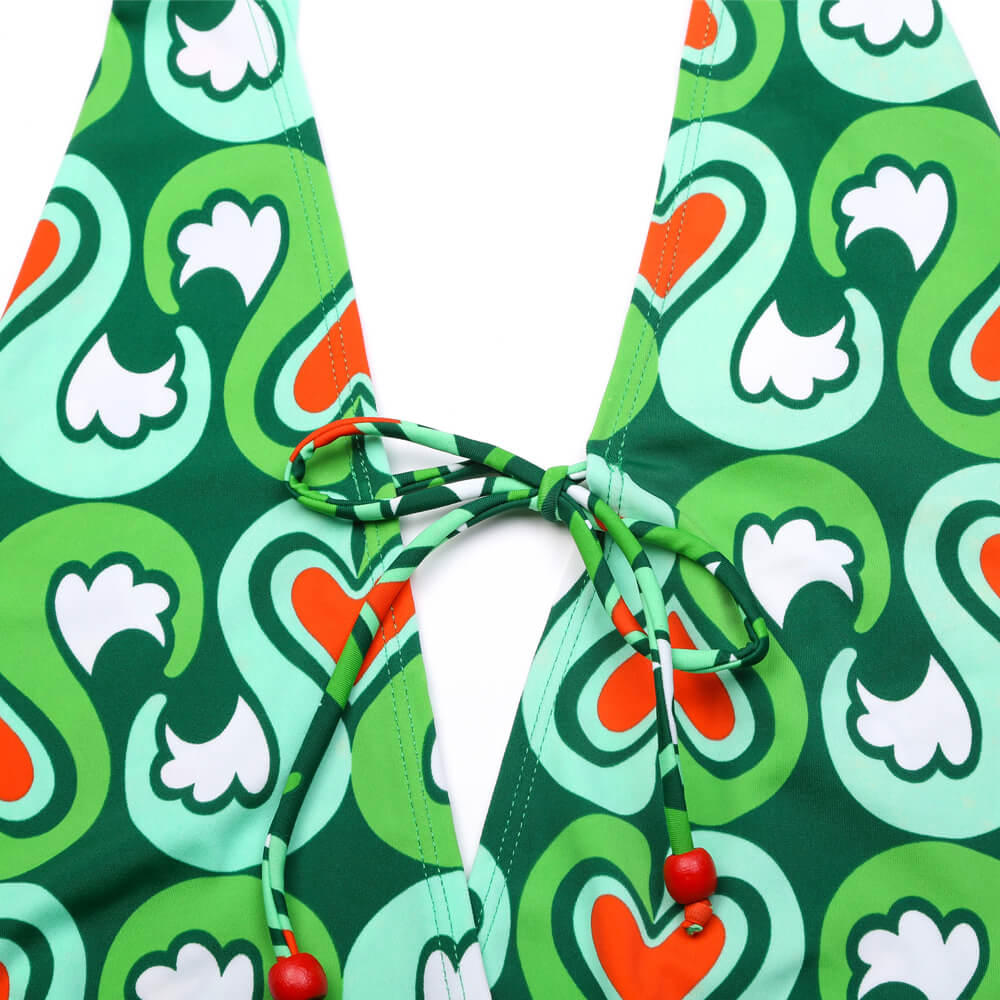 Chuzhou Sunrising Garment Co.,Ltd. Green Black Color Block Bra Bohemia Treny Women Beachwear Lady Swimming Suit.