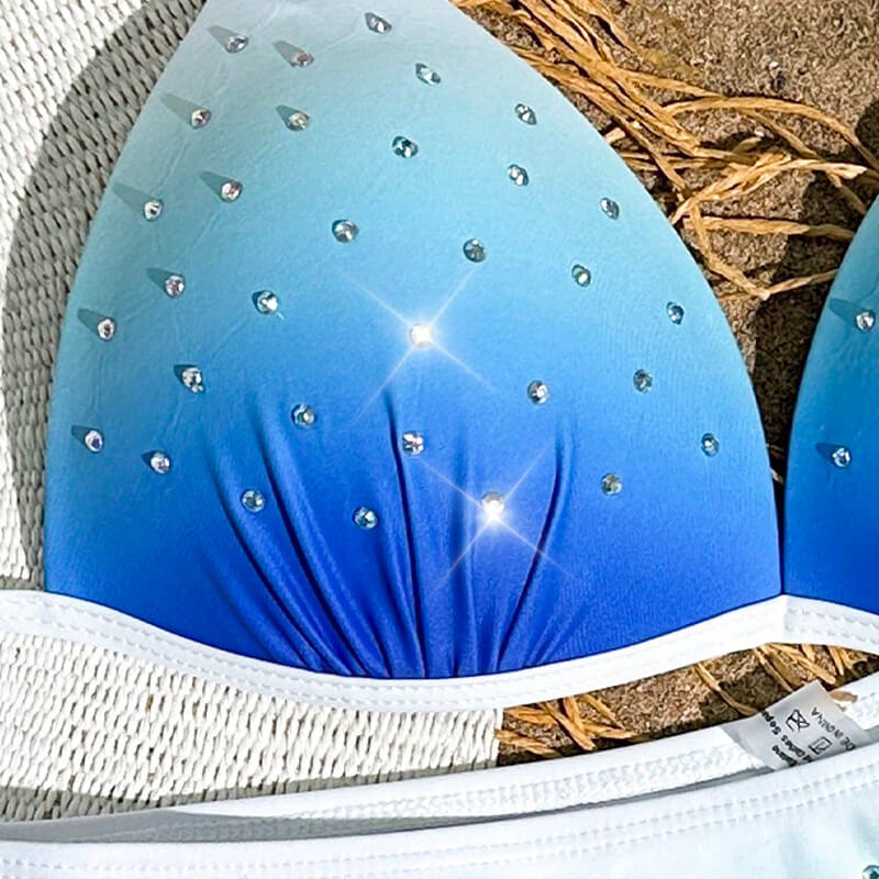 Chuzhou Sunrising Garment Co.,Ltd. faded blue rhinestone metallic women bikini.