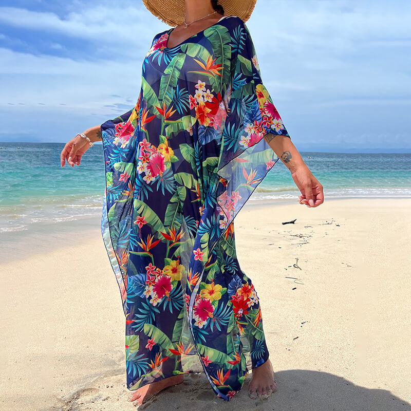 Chuzhou Sunrising Garment New Tropica Palm Leaf Chiffon Beach Dress.