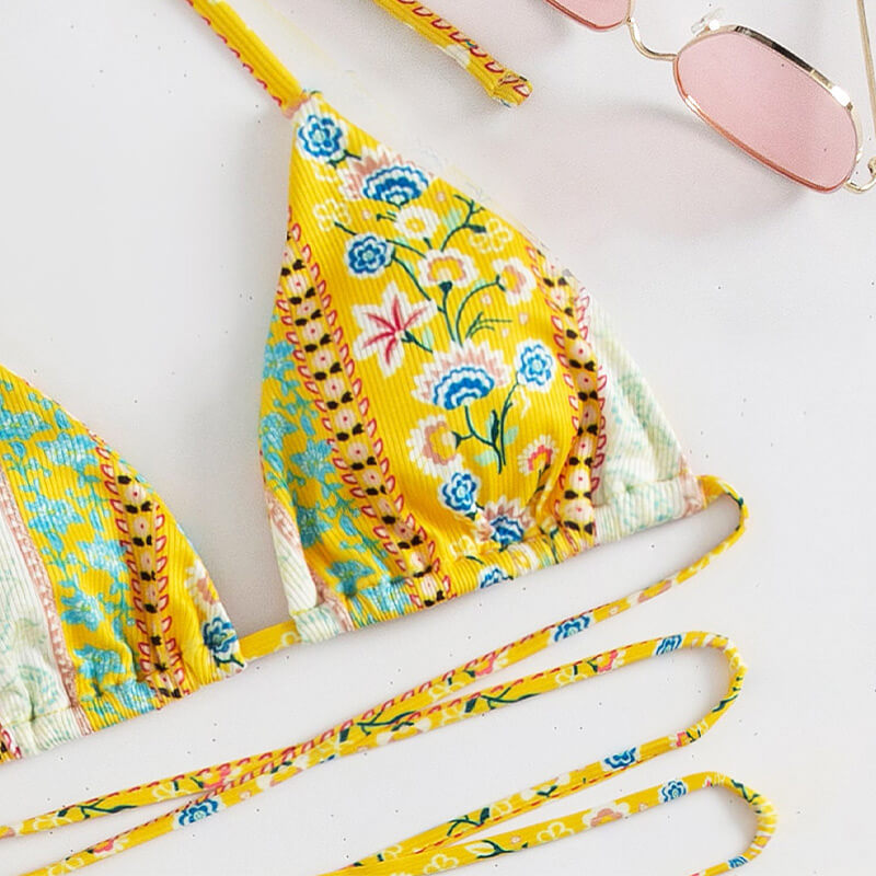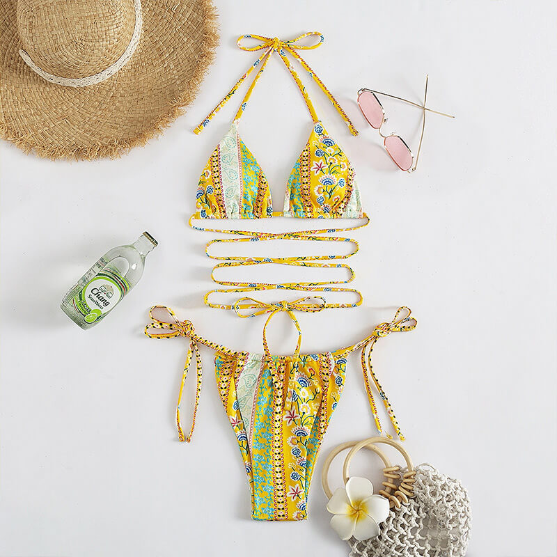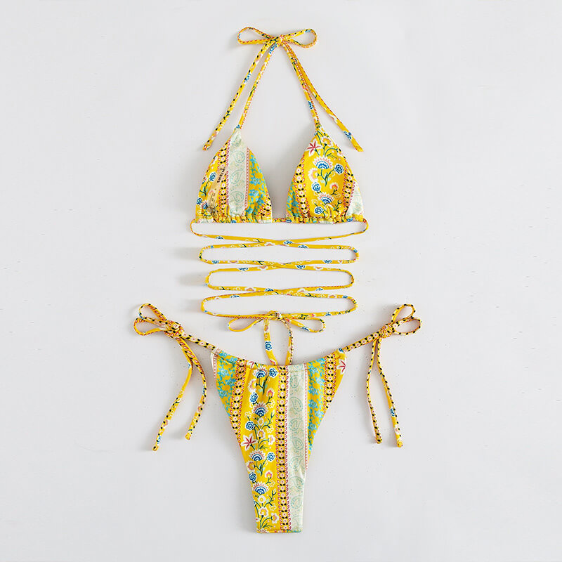 Chuzhou Sunrising Garment Co.,Ltd. 2024 paisley green floral sexy triangle bikini.