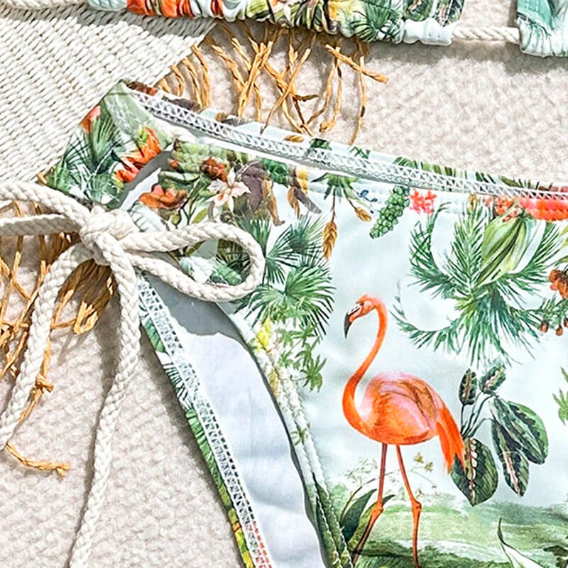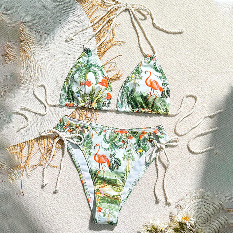 Chuzhou Sunrising Garment 2024 new flamingo jute rope tied two piece women bikini.