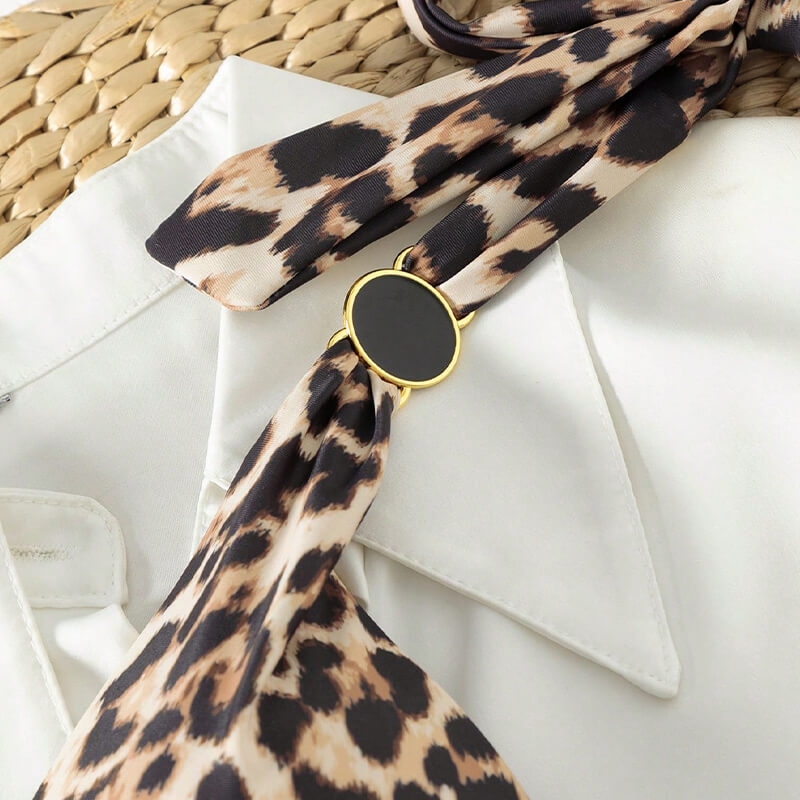 Metal ring linked tie side knotted plunge neck two piece leopard sexy wome bikini