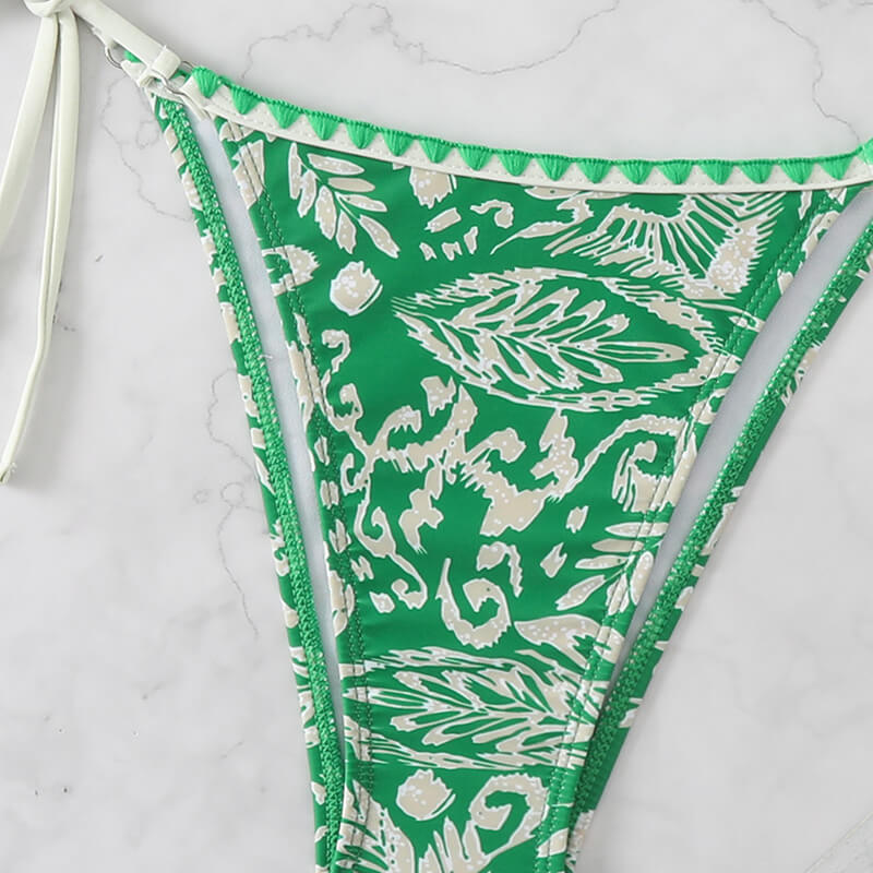 The high leg high waist tie side bottoms makes you slim and elegant.
