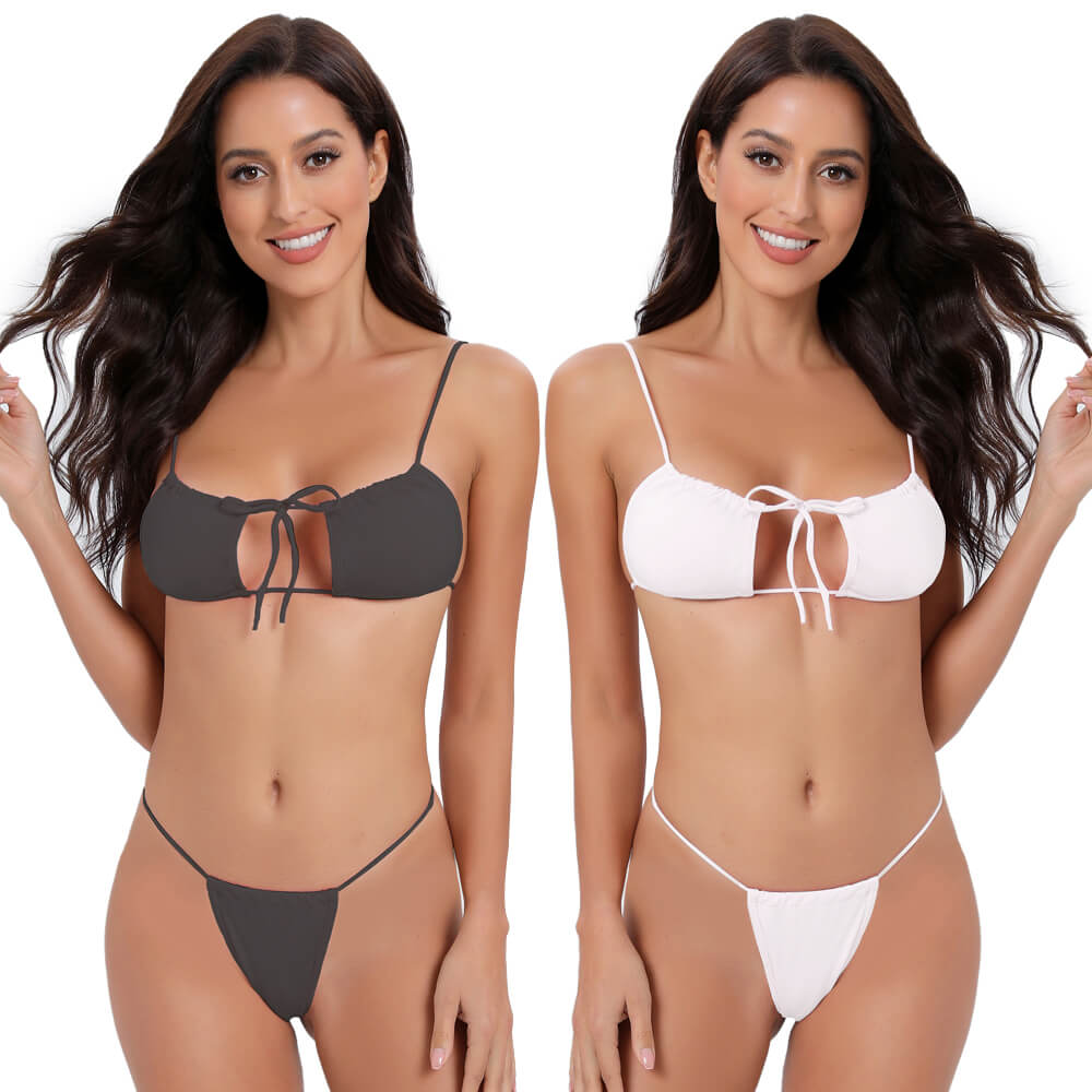 Square neck bandeau bralette top matches high waist g string bottom to make this extremely open