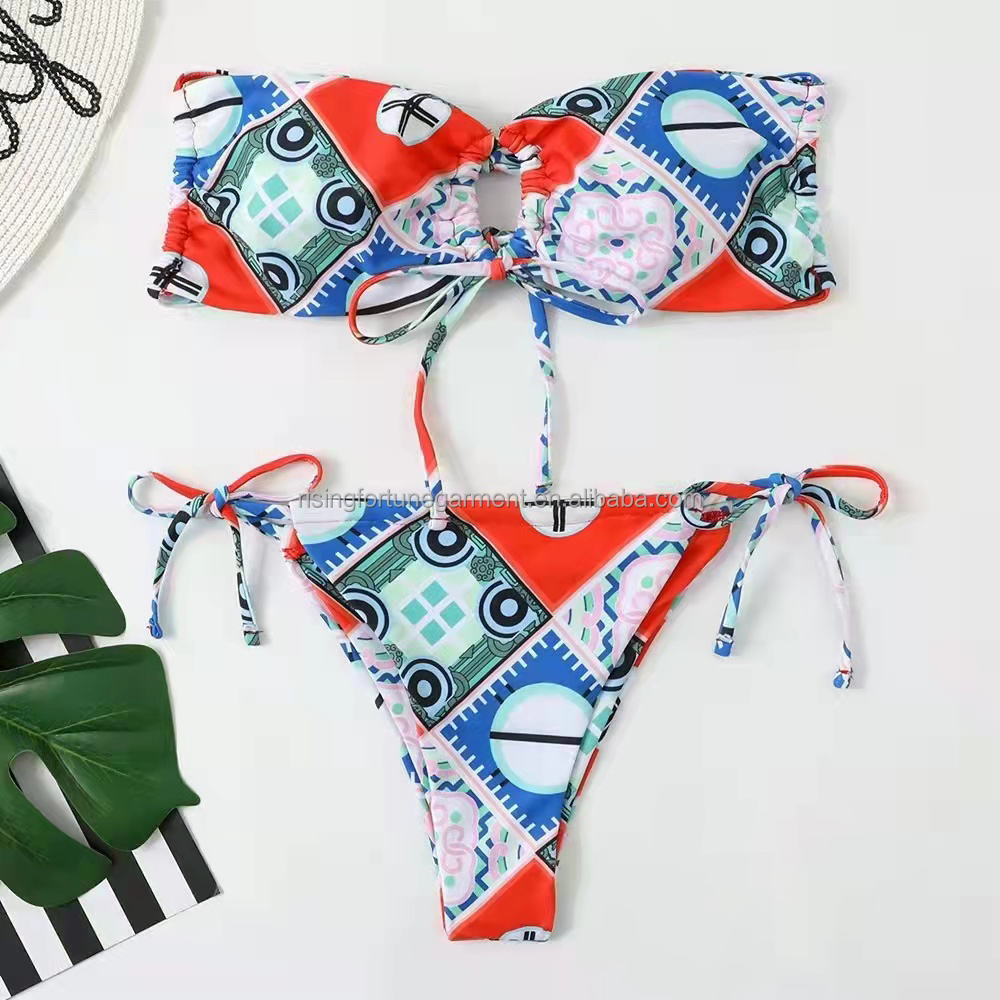 Yellow,pink,blue,white,green colorful patchwork sexy triangle vogue bikini set.