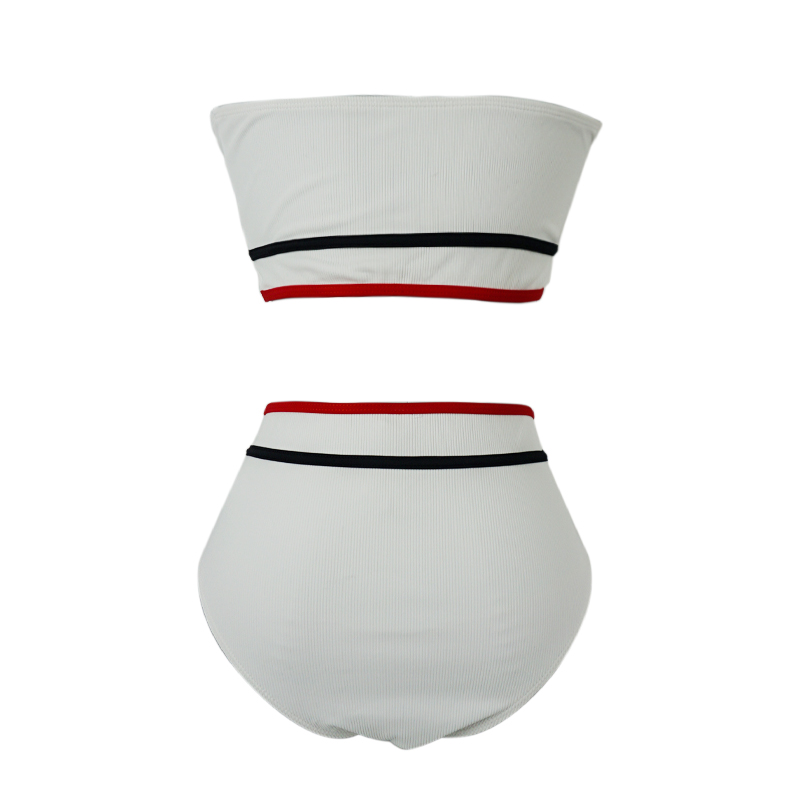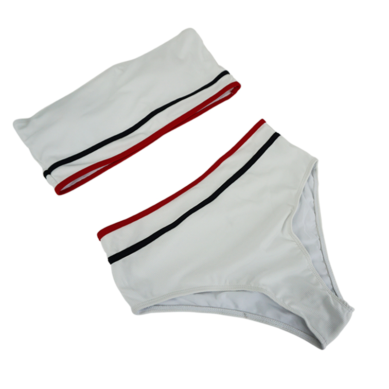 This creative waterdrop bandeau top together with the high waist bikini bottom makes the charming bikini set.