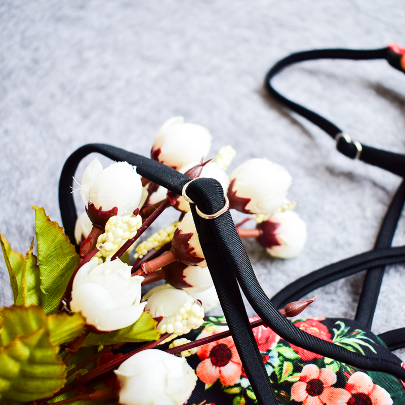 black red printiing chest criss cross one piece women swimsuit