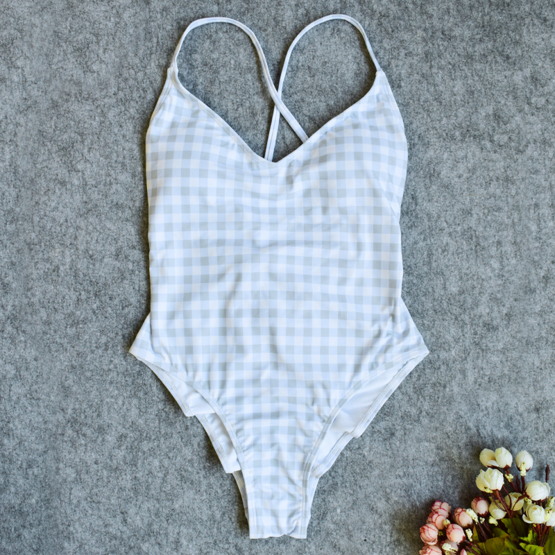 Hollow deep v design with thin strap.This checkered simple design makes it simple yet luxury and sexy.