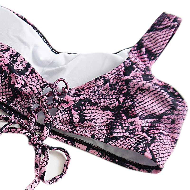 asymmetric bandeau back criss cross tie two piece swimsuit
