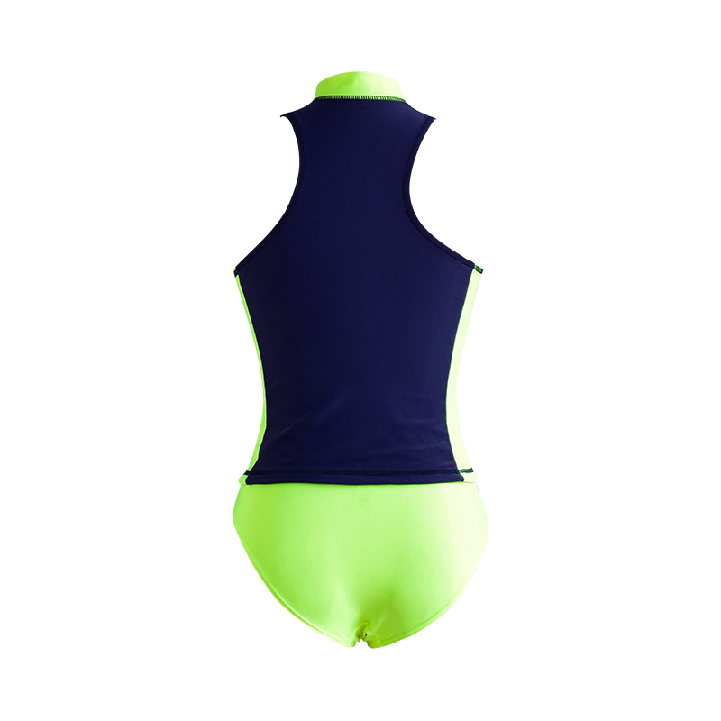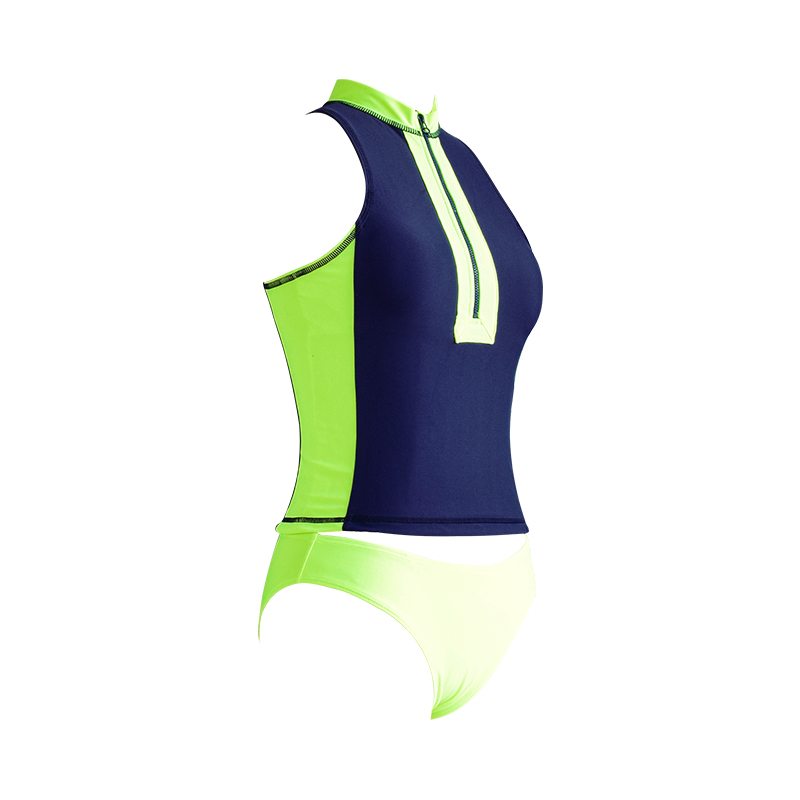 green and blue zipper patchwork bikini with bathing suit design