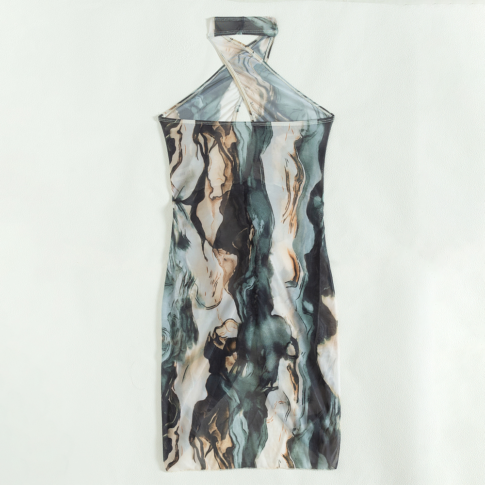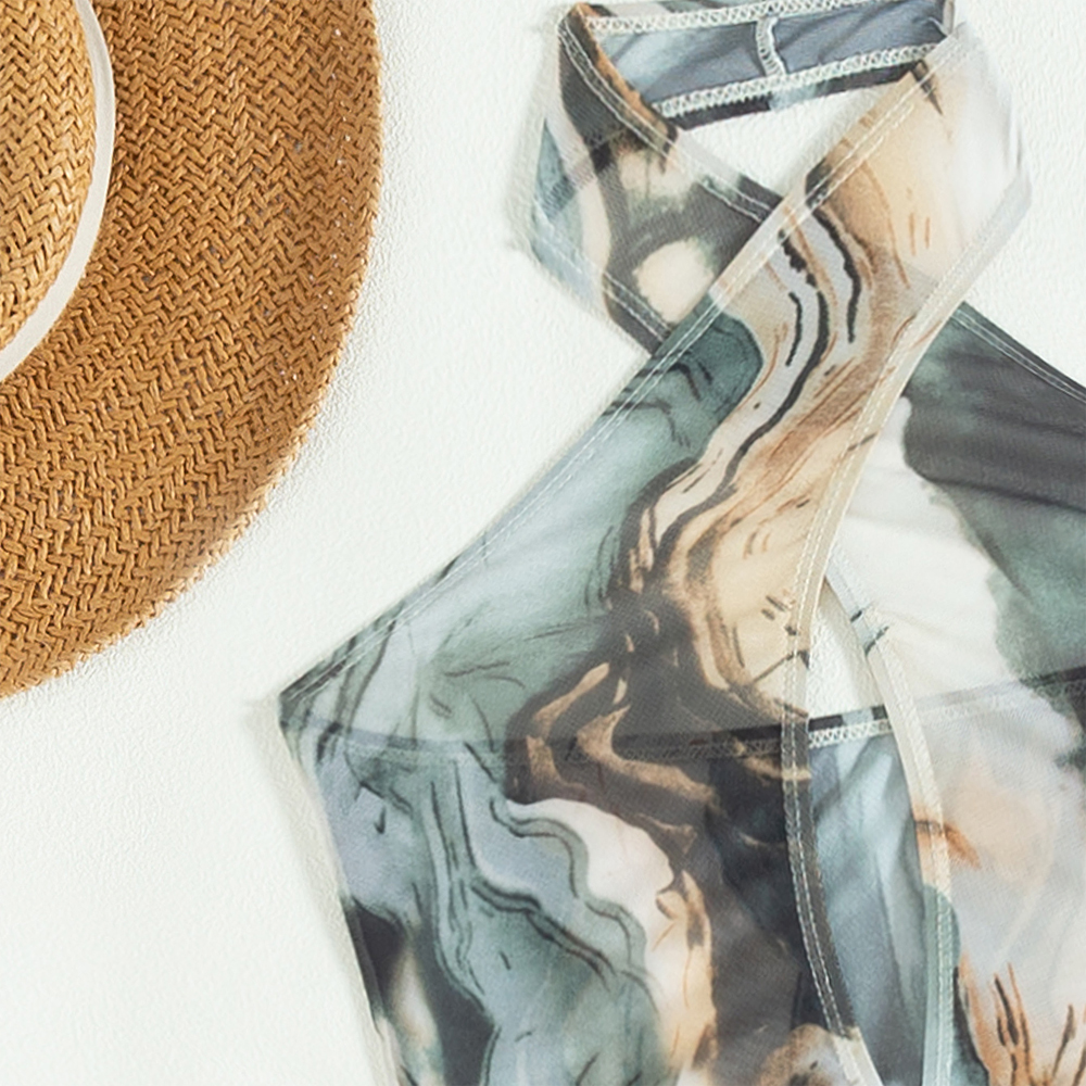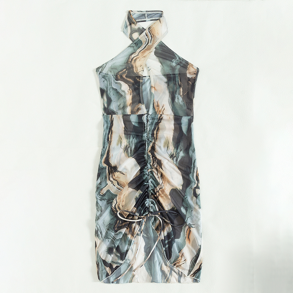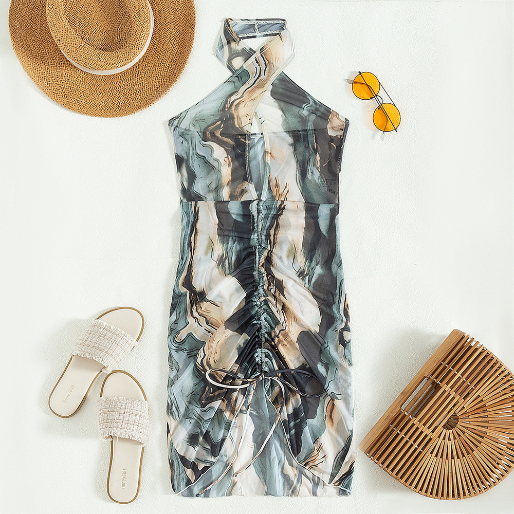 tie dye halter front ruched and backless women beach bikini collocation