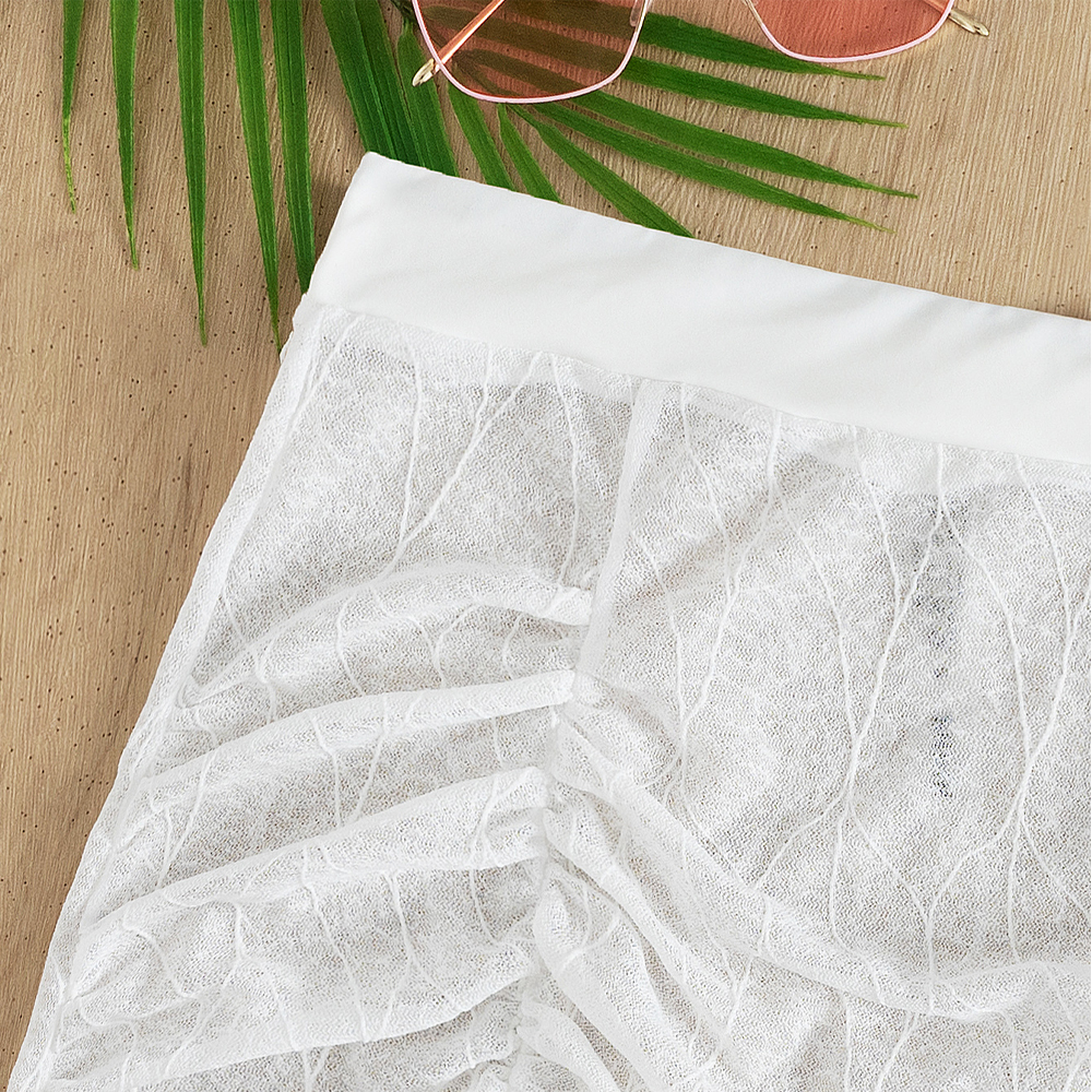 Make a bold style statement solid white ruched skirt.featuring elevate transparent mesh charming detail.feel free to mix and match all good looking.