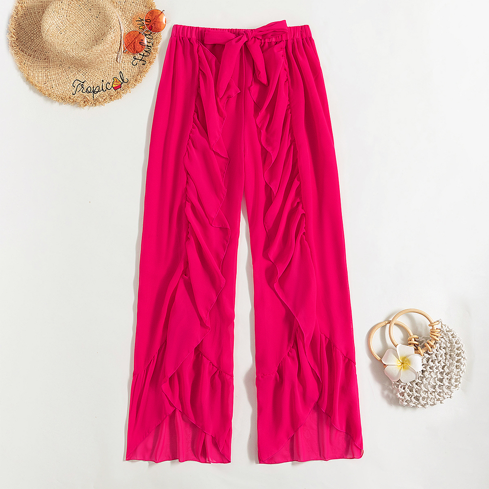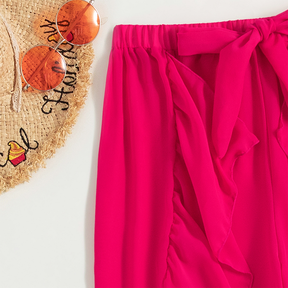 Elastic Waist Ruffled Detailing Beach Swimsuit Cover Up.