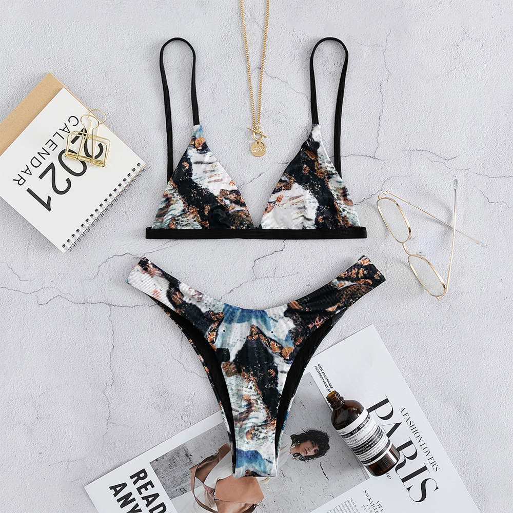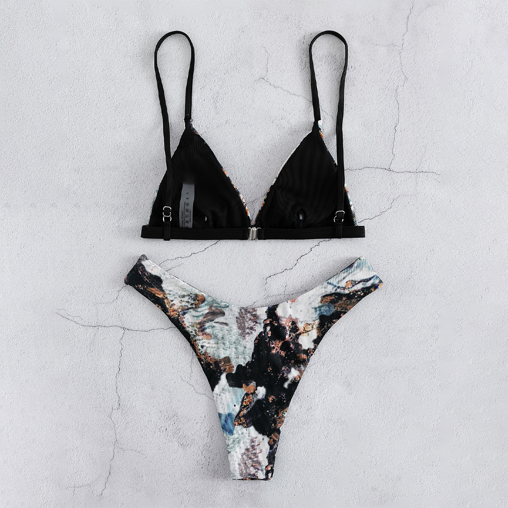 Creative Tie Dye Adjustable Strap Women Swimsuit.