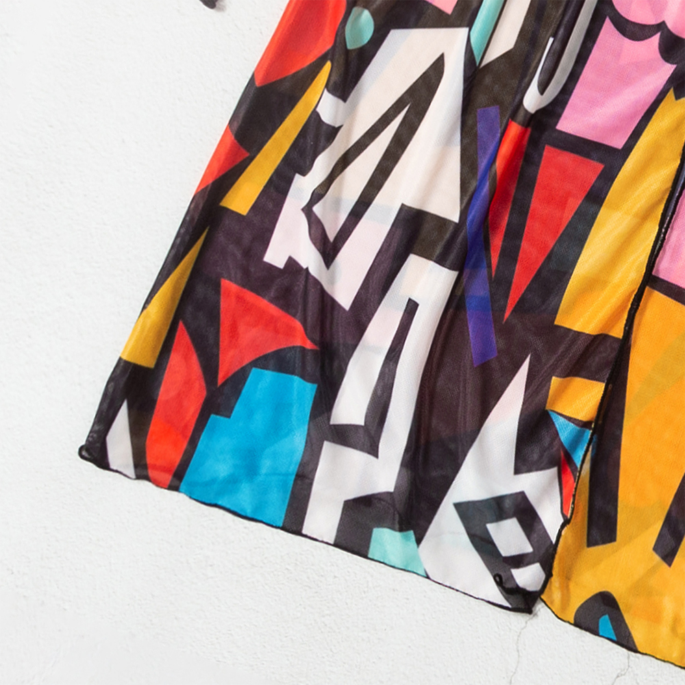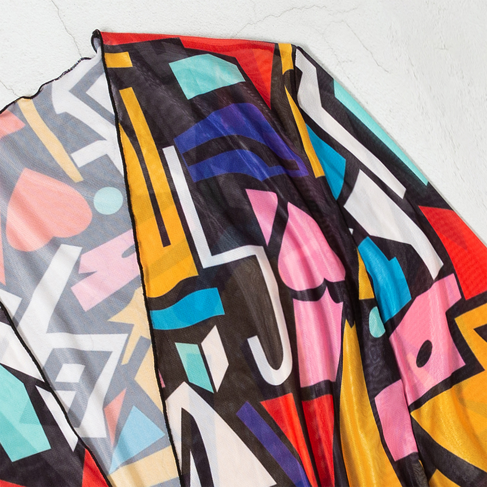 Creative geometric pattern, open front, bat sleeve, loose fit,vogue style shawl sheer chiffon kimono, match for bikini, swimwear, beachwear or any summer dress and shorts