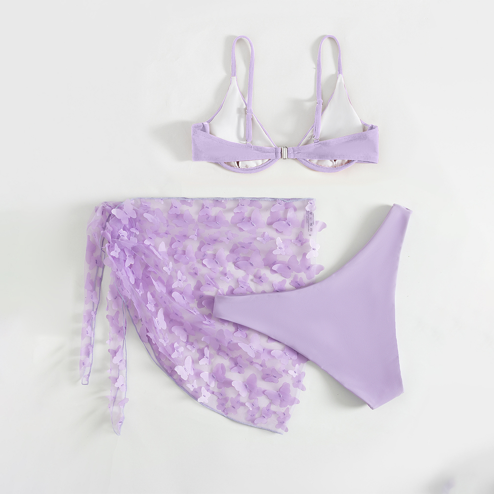 Fashion Sexy Underwire Fashion Beach Bikini Wrap Skirt Three-Piece Set