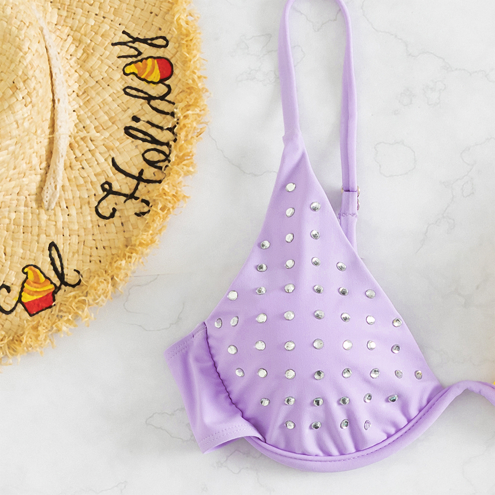 Triangle tie sides bling rhinestone women bikini .this creative color block design makes you look more elegant.