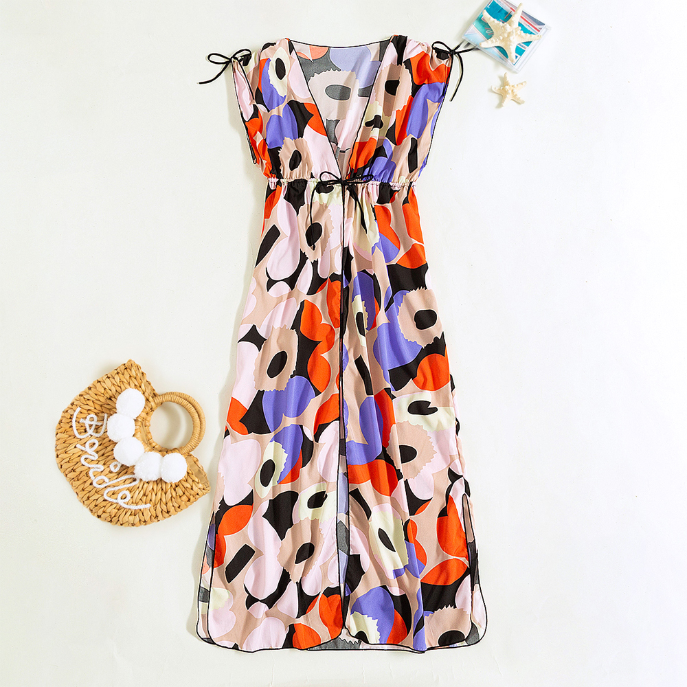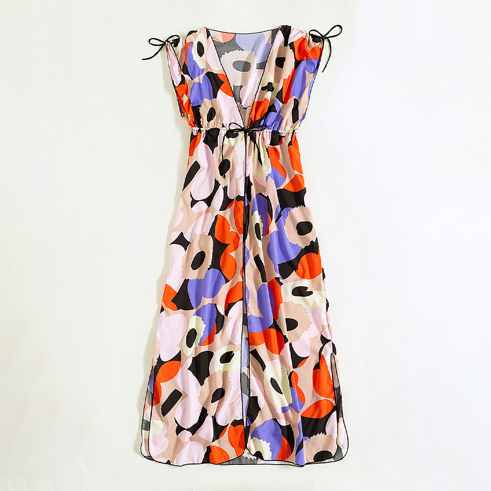 Floral printing long dress for your 2022-2023 summer.The split side design plus open front makes the design luxury and elegant.The tummy control makes this design classic and popular for your summer beach,swimming party.