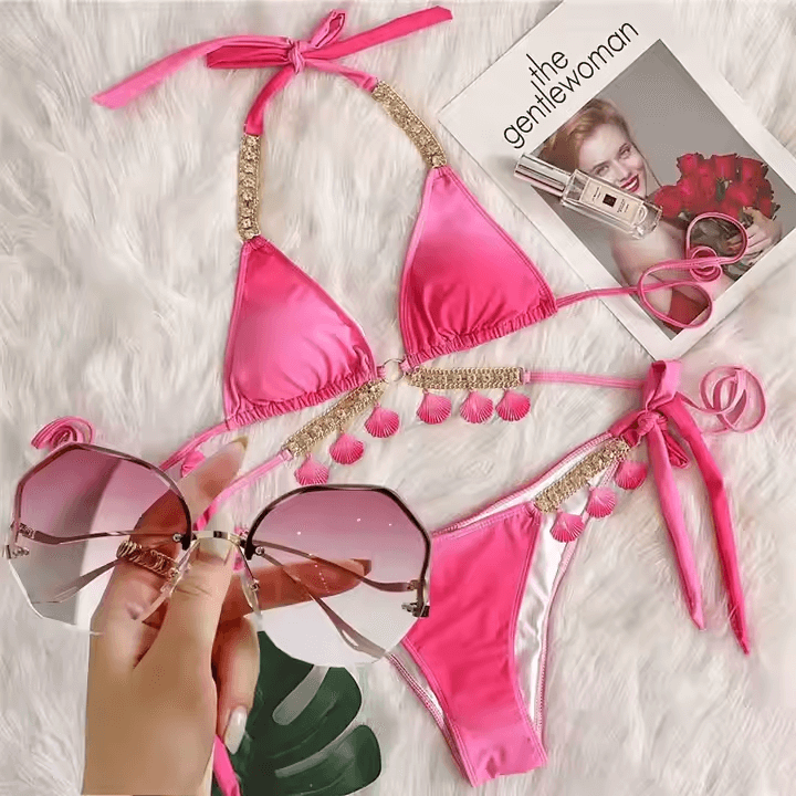 Chuzhou Sunrising Garment 2024 new flamingo jute rope tied two piece women bikini.